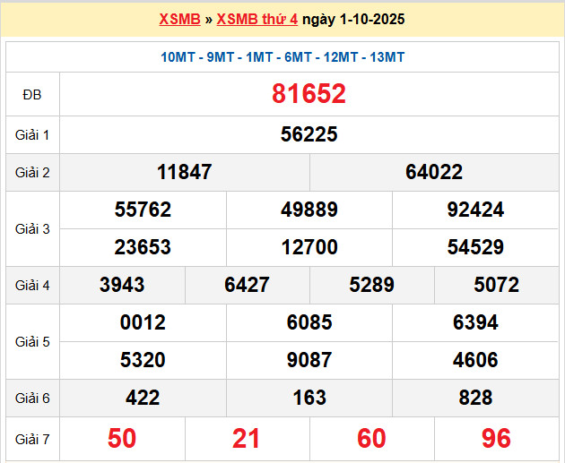 Soi cầu xsmb 1-10-2025 thứ 4 với đài Xổ Sổ Bắc Ninh theo xu hướng xsmb như hiện tại tỷ lệ trúng thưởng khá là cao anh em chú ý theo dõi.