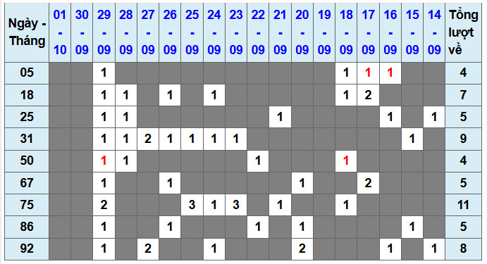 Các số đề chính xác đã ra được in màu ĐỎ – tính từ 01-10-2025