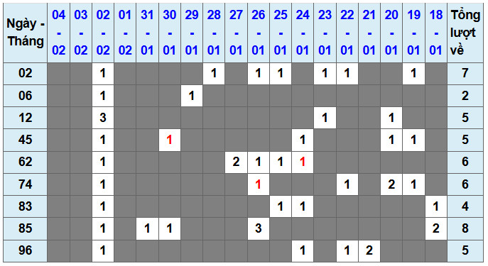 Theo vị trí xuất hiện 10 => dự đoán cặp lô hôm nay sẽ về 02 – 20.