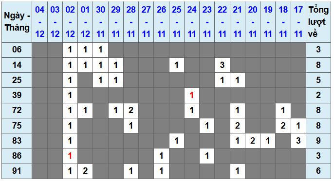 Các số đề chính xác đã ra được in màu ĐỎ – tính từ 01-12-2025