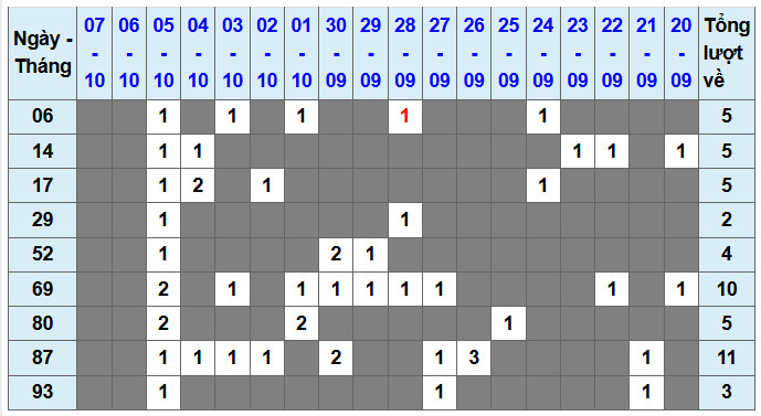 Các số đề chính xác đã ra được in màu ĐỎ – tính từ 01-10-2025