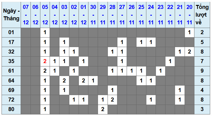 Dàn lô 4 số VIP miền Bắc: 35-61-64-69