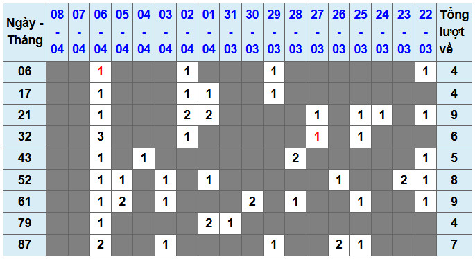 Theo vị trí xuất hiện 01 x2 => dự đoán cặp lô hôm nay sẽ về 06 – 60.