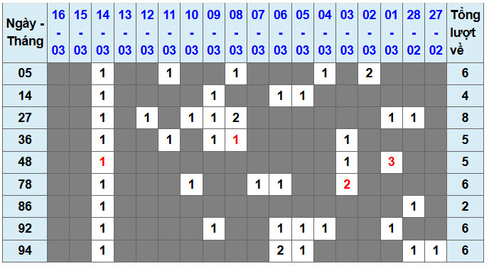 Các số đề chính xác đã ra được in màu ĐỎ – tính từ 01-03-2026