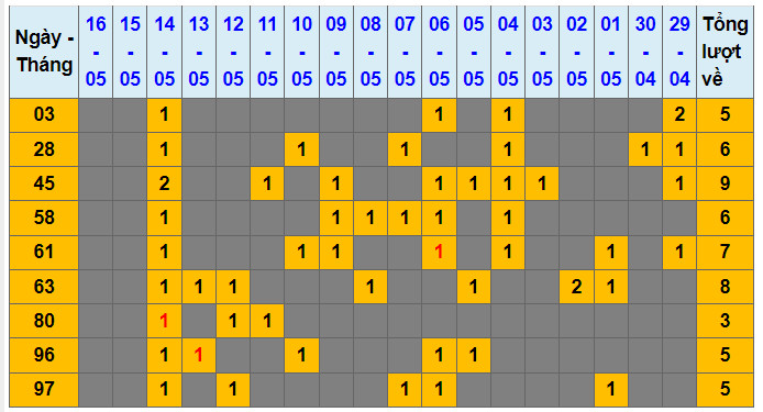 Các số đề chính xác đã ra được in màu ĐỎ – tính từ 01-05-2024