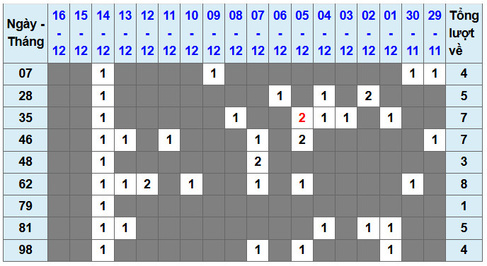 Các số đề chính xác đã ra được in màu ĐỎ – tính từ 01-12-2025