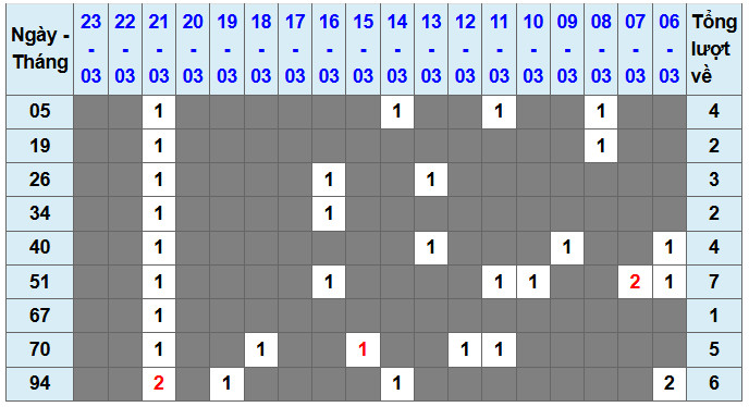 Các số đề chính xác đã ra được in màu ĐỎ – tính từ 01-03-2026