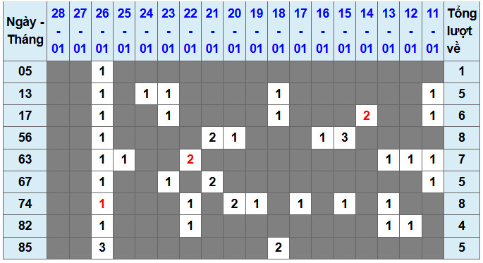 Theo vị trí xuất hiện 01 => dự đoán cặp lô hôm nay sẽ về 05 – 50.