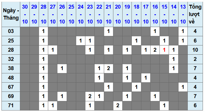 Lô tô miền bắc ngày qua xuất hiện 01 – 10 => theo vị trí mà chúng tôi bắt chiều nay có 03 – 30.