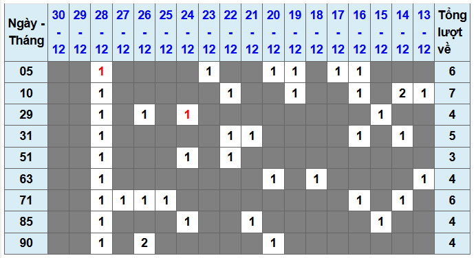 Các số đề chính xác đã ra được in màu ĐỎ – tính từ 01-12-2025