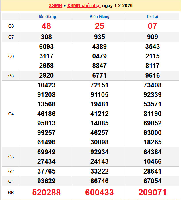 Chốt số lô dự đoán Tiền Giang 1-2-2026