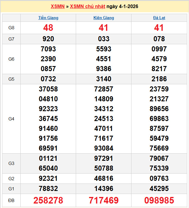 Soi cầu xổ số Tiền Giang 4-1-2026