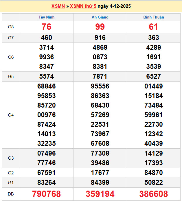 Diễn đàn Lô Đẹp Hôm Nay sẽ phân tích dự đoán XSMN Thứ 5 gồm các đài XSTN – XSAG – XSBTH hàng tuần và soi cầu xsmn 4-12-2025 tốt nhất cho người chơi, với các phương pháp soi cầu kết quả giải đặt biệt đầu đuôi, giải lô tô 2 số, lô xiên chính xác nhất.