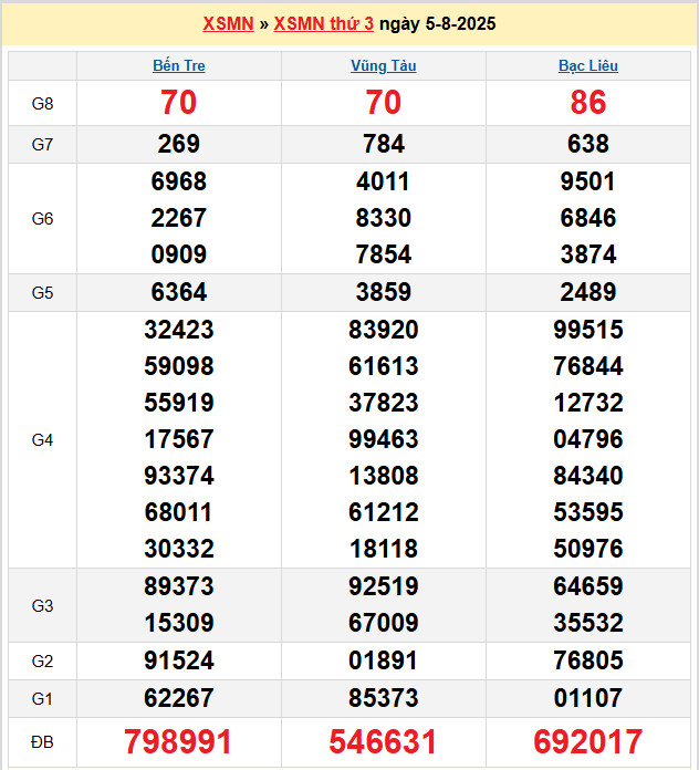 Chốt số lô dự đoán Bạc Liêu 5-8-2025