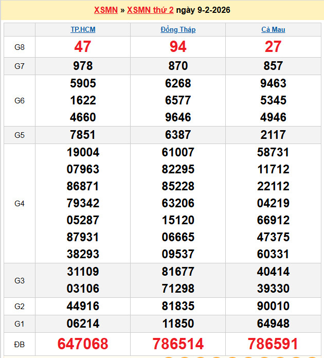 Soi cầu XSMN 09/02/2026 – Dự đoán Miền Nam Thứ 2