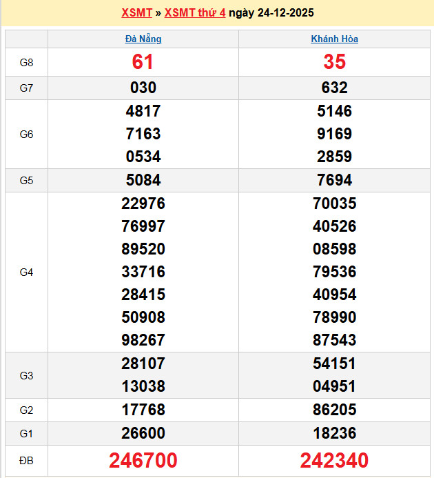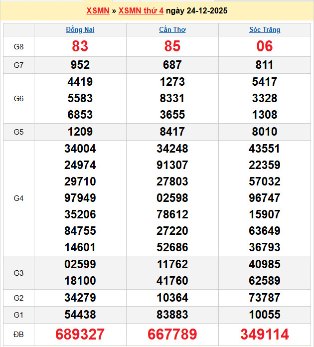 Xem lại bảng kết quả Miền Nam kì trước:
