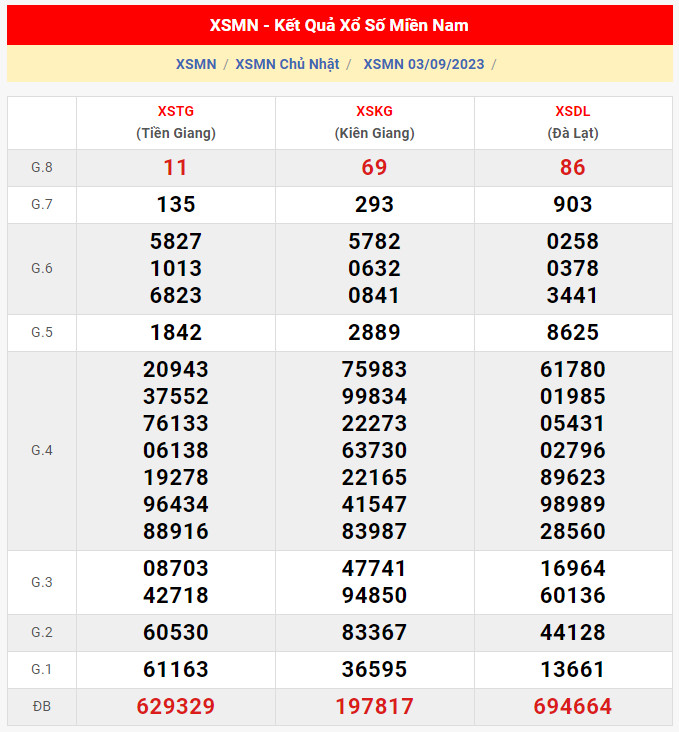 Xem lại bảng kết quả Miền Nam kì trước: