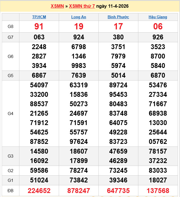 Xem lại bảng kết quả Miền Nam kì trước:
