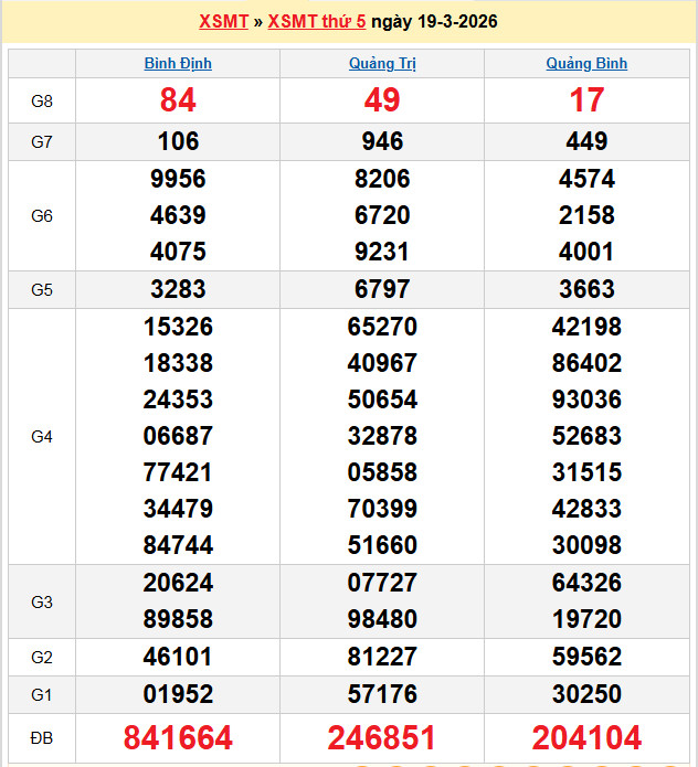 Xem lại bảng kết quả Miền Nam kì trước: