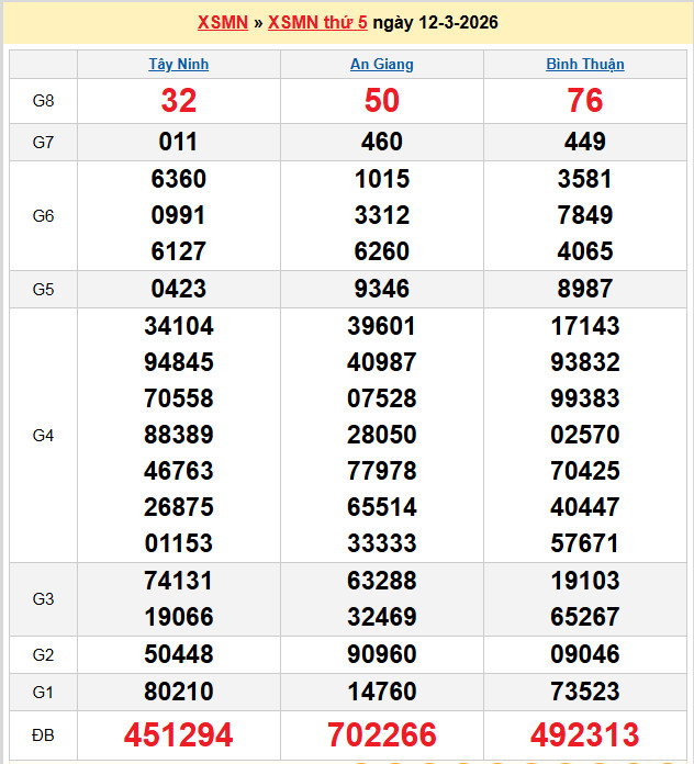Diễn đàn Lô Đẹp Hôm Nay sẽ phân tích dự đoán XSMN Thứ 5 gồm các đài XSTN – XSAG – XSBTH hàng tuần và soi cầu xsmn 12-3-2026 tốt nhất cho người chơi, với các phương pháp soi cầu kết quả giải đặt biệt đầu đuôi, giải lô tô 2 số, lô xiên chính xác nhất.