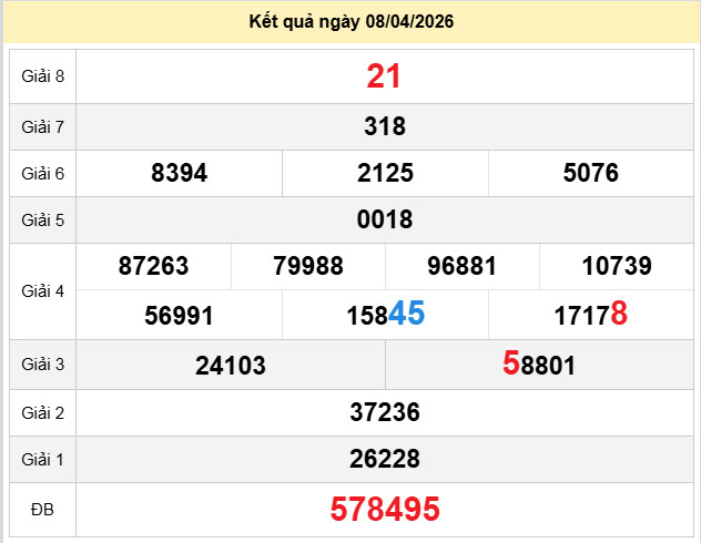 Xem lại bảng kết quả Miền Nam kì trước: