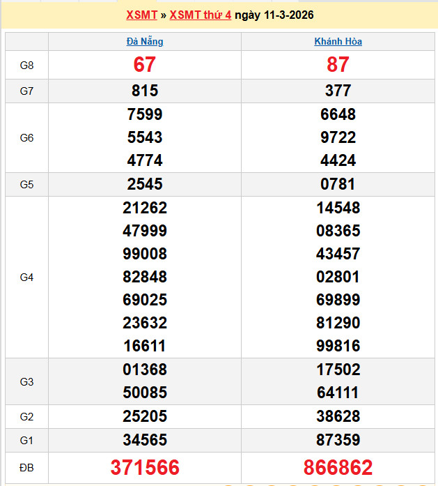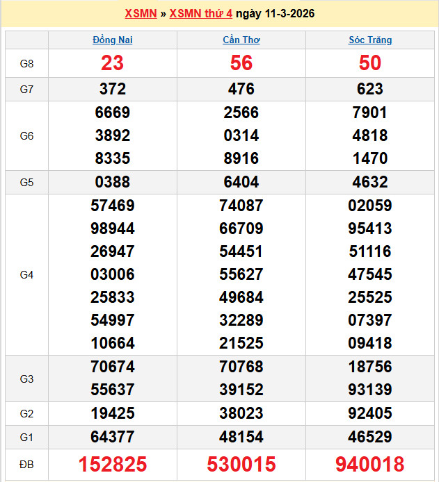 Xem lại bảng kết quả Miền Nam kì trước:
