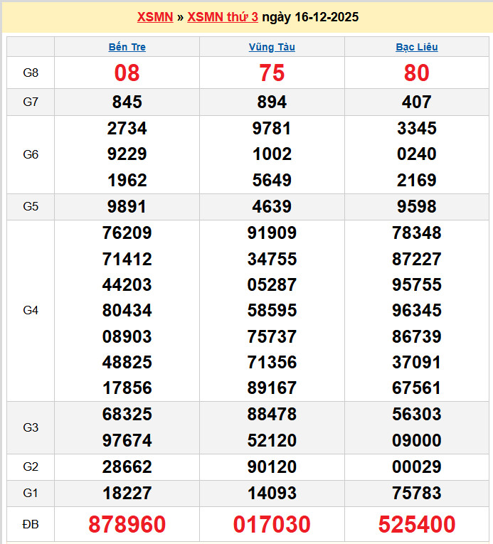 Chốt số lô dự đoán Bạc Liêu 16-12-2025