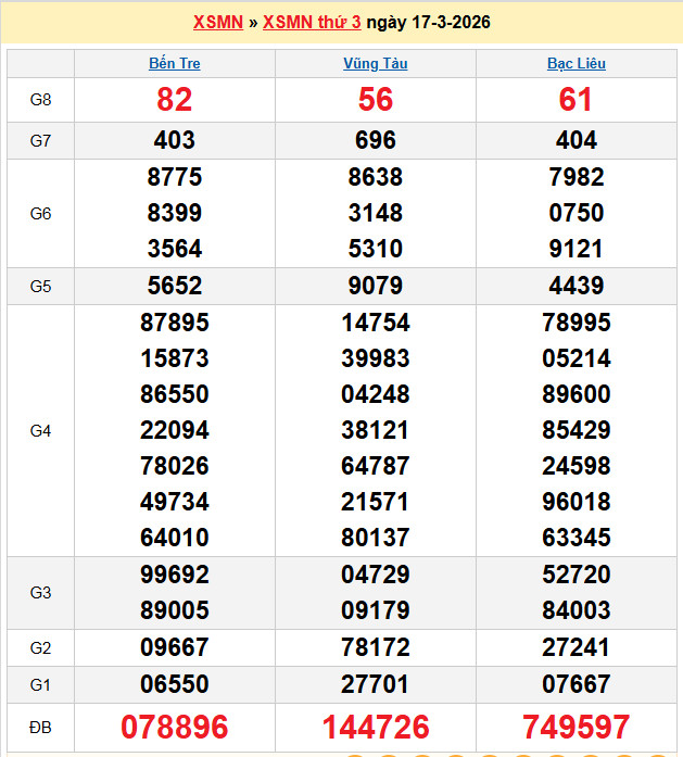 Chốt số lô dự đoán Bạc Liêu 17-3-2026