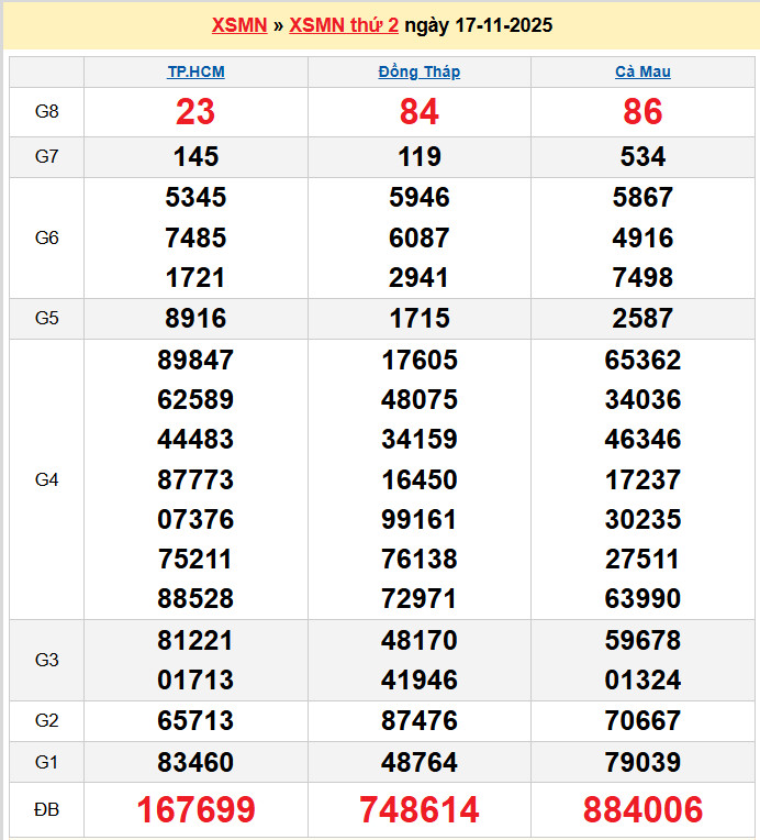 Chốt số lô dự đoán Cà Mau 17-11-2025