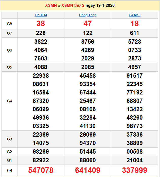 Chốt số lô dự đoán Cà Mau 19-1-2026