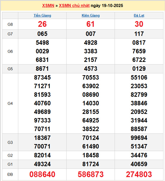 Chốt số lô dự đoán Tiền Giang 19-10-2025