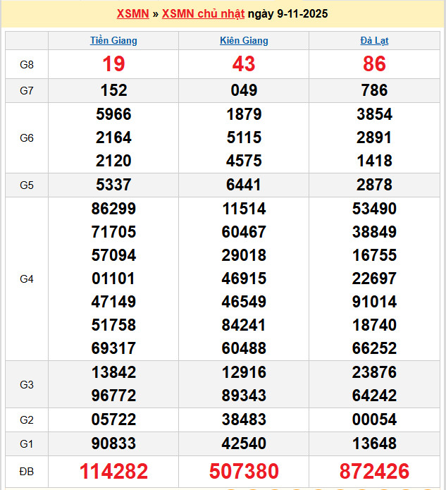 Xem lại bảng chốt số Miền Nam của kỳ trước