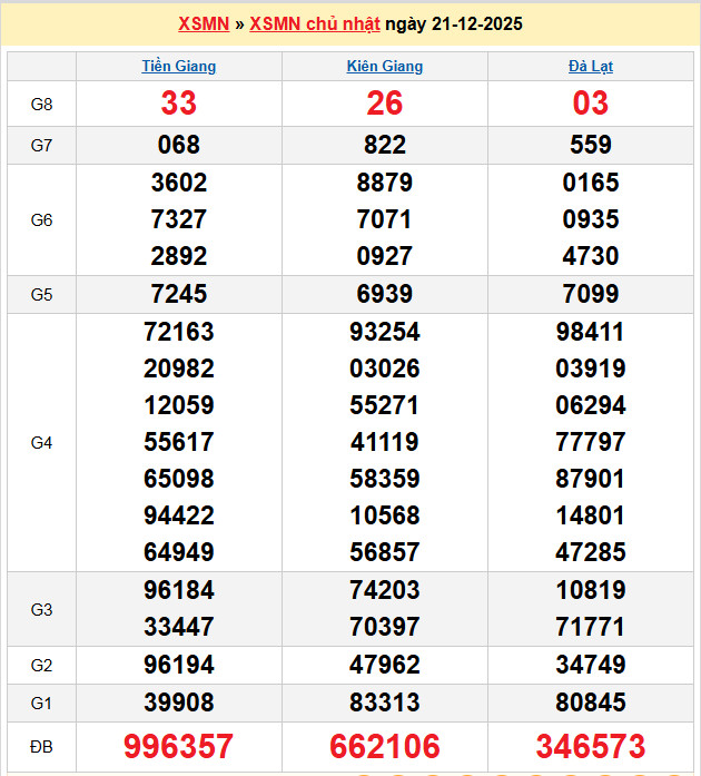 Chốt số lô dự đoán Tiền Giang 21-12-2025