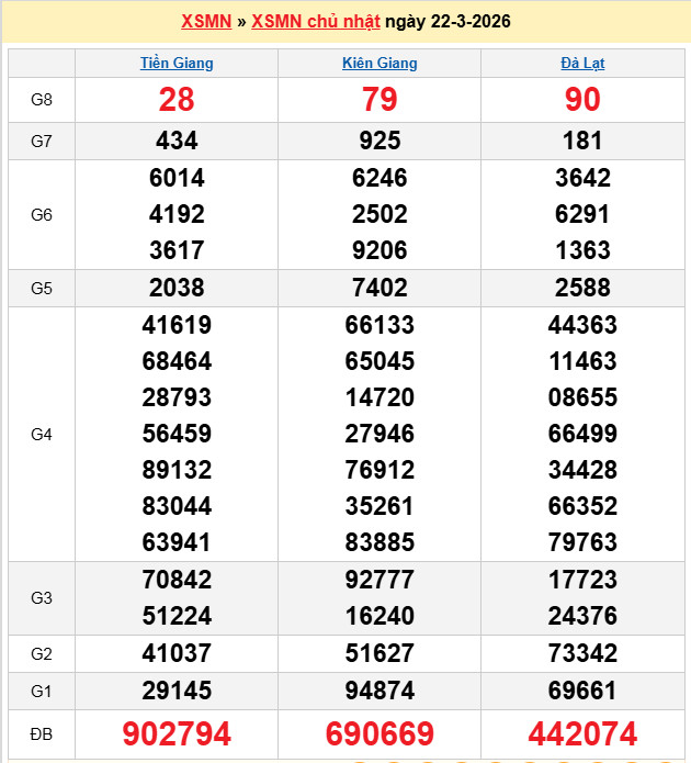 Chốt số lô dự đoán Tiền Giang 22-3-2026