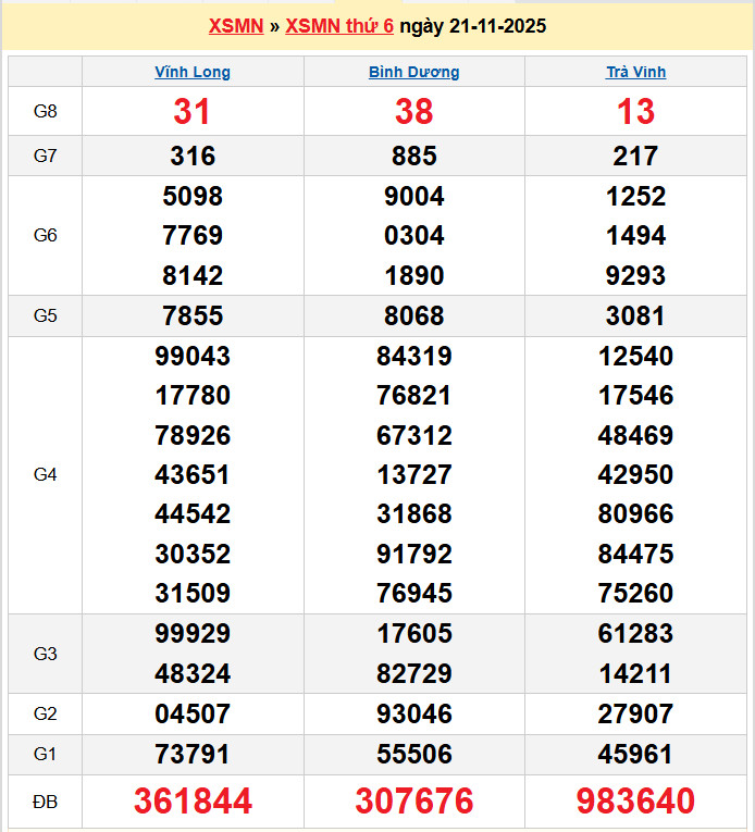 Xem lại bảng kết quả Miền Nam kì trước: