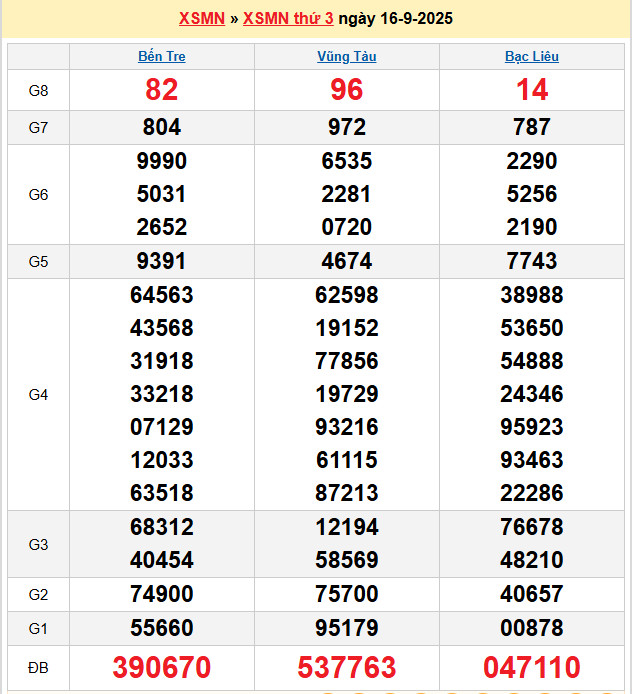 Xem lại bảng kết quả Miền Nam kì trước: