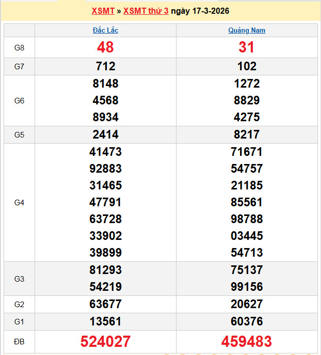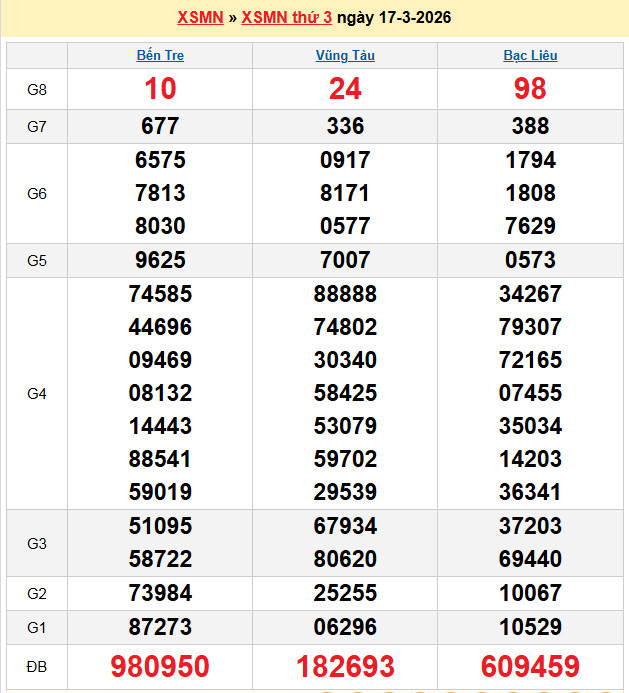 Xem lại bảng kết quả Miền Nam kì trước: