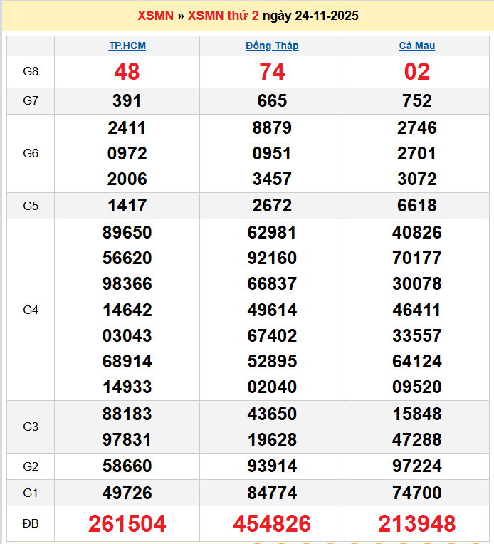Chốt số lô dự đoán Cà Mau 24-11-2025