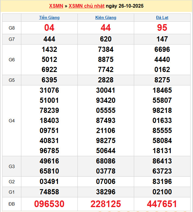 Chốt số lô dự đoán Tiền Giang 26-10-2025