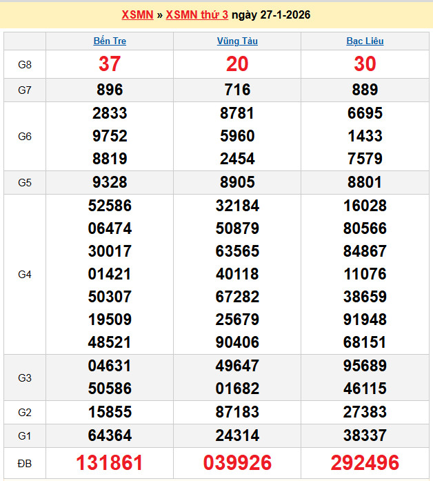 Chốt số lô dự đoán Bạc Liêu 27-1-2026