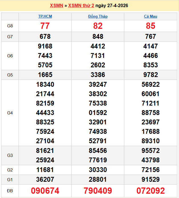 Xem lại bảng kết quả Miền Nam kì trước:
