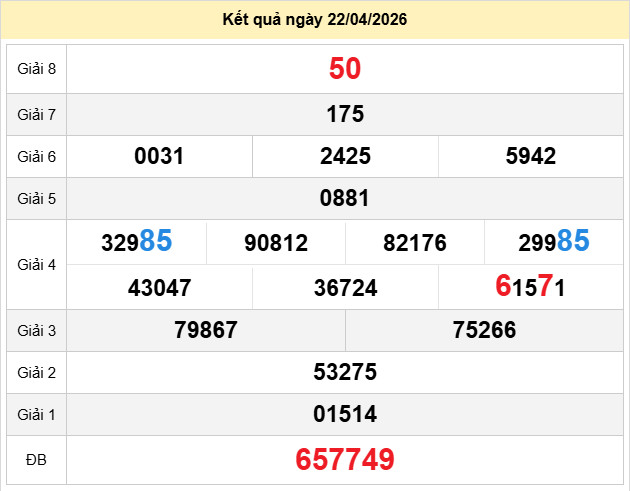 Xem lại bảng kết quả Miền Nam kì trước: