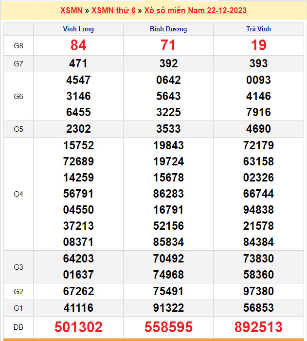 Xem lại bảng kết quả Miền Nam kì trước: