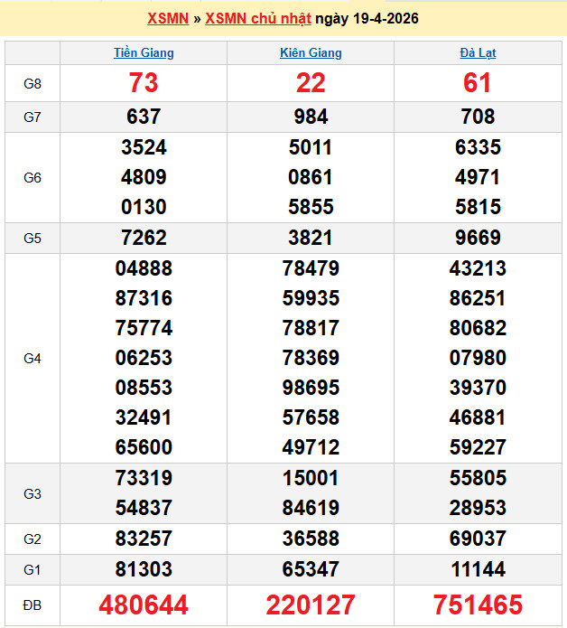 Xem lại bảng chốt số Miền Nam của kỳ trước