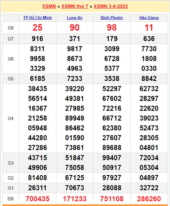 Diễn đàn Lô Đẹp Hôm Nay là trang chuyên soi cầu XSMN 3-9-2022 – dự đoán kết quả xổ số và tần xuất lô tô, XSHCM – XSHG – XSBP – XSLA Thứ 7 miễn phí hàng tuần.