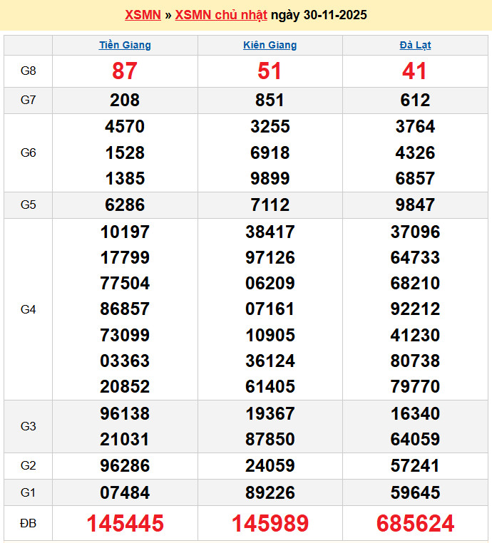 Chốt số lô dự đoán Tiền Giang 30-11-2025