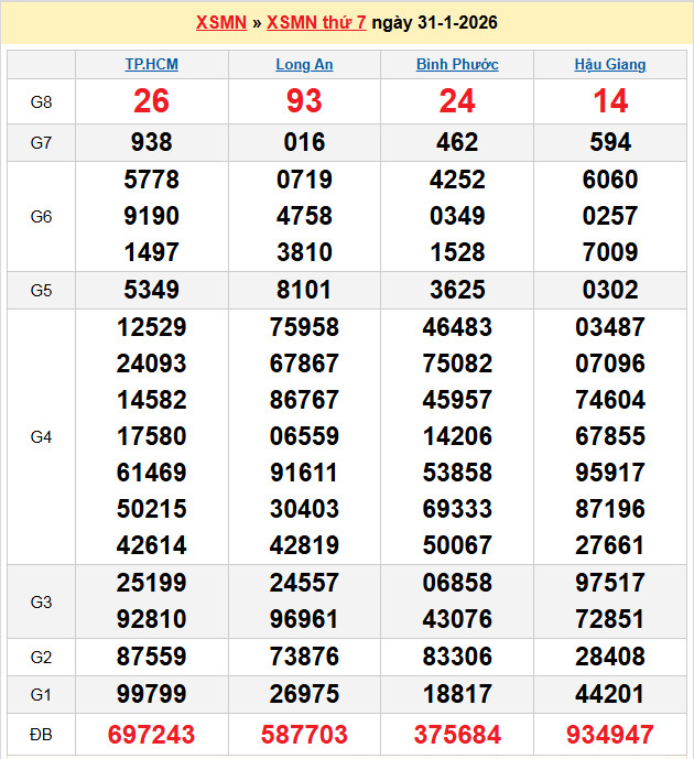 Chốt số lô dự đoán Hồ Chí Minh 31-1-2026