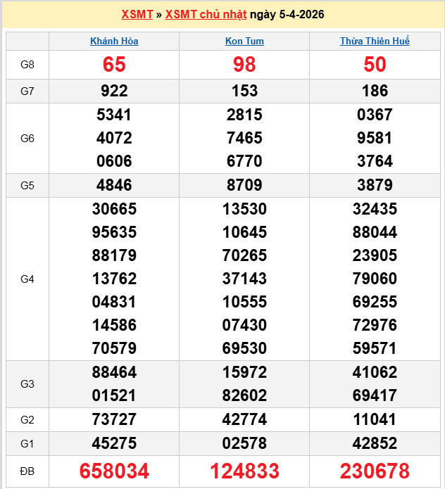 Chuyên gia Lô Đẹp Hôm Nay dự đoán soi cầu XSMT 5-4-2026 Chủ Nhật hàng tuần. Cùng các cao thủ chốt số giờ vàng gồm đài XS Khánh Hoà – Kon Tum và tần xuất lô tô đang chạy điều, để đưa ra tính toán xác xuất dự đoán kết quả cầu lô giải đặt biệt đầu đuôi, giải lô tô 2 số, lô xiên chính xác nhất, được thực hiện bởi Admin và cùng hàng nghìn thành viên tham gia tại diễn đàn của chúng tôi..