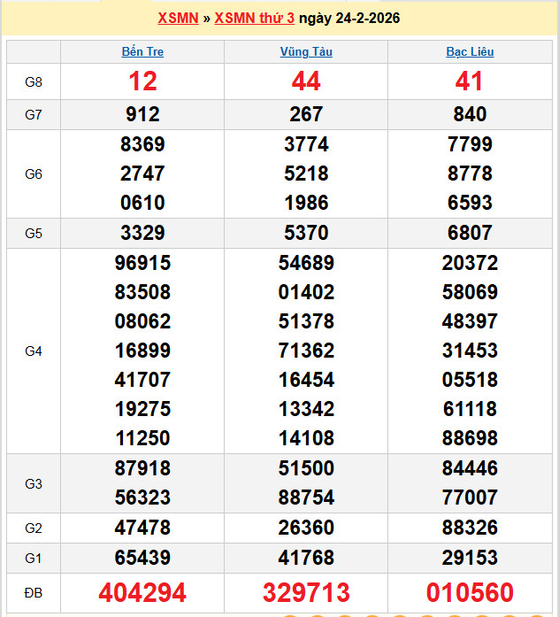 Đặc biệt đầu đuôi: 52