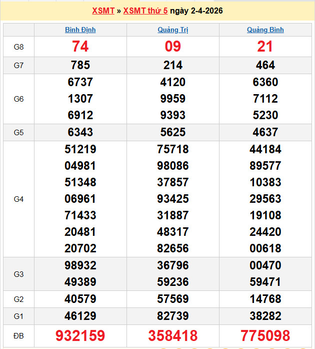 Xem lại bảng chốt số Miền Trung của kỳ trước